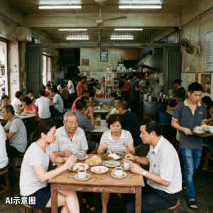经常也可以看到,每天清晨,咖啡店里人声鼎沸:有人点咖啡配Roti Kahwin,有人吃半生熟蛋,也有人匆匆来一碗哥罗面、叻沙解决一顿早餐。到了午市,白领、工人、学生轮番进出,一桌接一桌,看起来生意源源不绝。